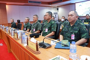 โอกาสนี้ พลตรี วรเดช เดชรักษา รองผู้อำนวยการรักษาความมั่นคงภายในภาค 4 ส่วนหน้า เปิดเผยสถานการณ์ห้วงที่ผ่านมากลุ่มผู้ก่อเหตุรุนแรงยังคงมีความพยายามก่อเหตุในรูปแบบต่าง ๆ สนับสนุนงานทางการเมืองและภาคประชาสังคม มีการใช้โซเชียลมีเดียบิดเบือนข้อมูลข่าวสาร ซึ่งกองอำนวยการรักษาความมั่นคงภายในภาค 4 ส่วนหน้า เป็นหน่วยงานหลักในการบูรณาการขับเคลื่อนงานด้านความมั่นคงและด้านการพัฒนา ร่วมกับหน่วยงานที่เกี่ยวข้อง ภายใต้แผนเสริมสร้างสันติสุขจังหวัดชายแดนภาคใต้ ประจำปี 2568 อย่างประสานสอดคล้อง และมีเอกภาพ โดยน้อมนำยุทธศาสตร์พระราชทาน “เข้าใจ เข้าถึง พัฒนา” หลักปรัชญาของเศรษฐกิจพอเพียง และการพัฒนาตามภูมิสังคมเป็นยุทธศาสตร์หลักแก้ไขปัญหาในพื้นที่จังหวัดชายแดนภาคใต้ ภายใต้นโยบายสำคัญ 5 ด้าน พร้อมย้ำว่าทุกภาคส่วนบูรณาการร่วมกันสร้างความเข้าใจในทุกมิติ นำหลักศาสนาที่ถูกต้องจากท่านจุฬาราชมนตรีและผู้นำศาสนาในพื้นที่มาขับเคลื่อนฮูกุมปากัต (ธรรมนูญหมู่บ้าน 9 ดี) ในทุกชุมชน ทุกหมู่บ้าน โดยใช้ยุทธศาสตร์ประชาชนมีส่วนร่วมตรงความต้องการของประชาชน ชุมชน รวมทั้งเปิดเวทีรับฟังความคิดเห็นพี่น้องประชาชนทุกกลุ่มผ่านการประชาคมหมู่บ้านและสภาสันติสุขตำบล เพื่อรับทราบปัญหาความต้องการที่แท้จริงให้พี่น้องประชาชนมีคุณภาพชีวิตที่ดีขึ้น นอกจากนี้ดำเนินการปรับลดการใช้กฎหมายพิเศษ ตามสถานการณ์ แต่คงไว้เฉพาะที่จำเป็น เพื่อคุ้มครองเจ้าหน้าที่ผู้ปฏิบัติงานและพี่น้องประชาชนในพื้นที่ รวมถึงการนำผู้กระทำผิดกฎหมายมาดำเนินคดีตามกระบวนการยุติธรรมได้อย่างมีประสิทธิภาพ ส่วนการปรับลดกำลังทหารและถอนกำลังกองทัพภาคต่าง ๆ นั้น มุ่งเน้นการเสริมสร้างประสิทธิภาพสมาชิกกองอาสารักษาดินแดนจังหวัดชายแดนภาคใต้ทดแทนกำลังทหารในห้วงเปลี่ยนผ่านสู่การบริหารพื้นที่ภายใต้กลไกปกติของทางราชการ สำหรับสถานการณ์อุทกภัยห้วงที่ผ่านมาได้บูรณาการร่วมกับทุกภาคส่วนนำยุทโธปกรณ์ของกองทัพบกเข้าช่วยเหลือประชาชนทันที เมื่อได้รับคำร้องขอหรือประสานจากหน่วยงานข้างเคียง อีกทั้งจัดตั้งรถครัวสนามและติดตั้งสะพานเครื่องหนุนมั่น เพื่อให้ประชาชนสามารถใช้สัญจรได้ชั่วคราวและร่วมกับทุกภาคส่วนดำเนินการฟื้นฟู จนกลับเข้าสู่ภาวะปกติ