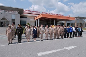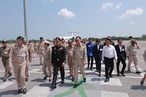 ในการนี้ นายสมชาย ลีหล้าน้อย ผู้ว่าราชการจังหวัดนครศรีธรรมราช พลโท ไพศาล หนูสังข์ แม่ทัพภาคที่ 4 / ผู้อำนวยการรักษาความมั่นคงภายในภาค 4 พร้อมด้วยหัวหน้าส่วนราชการและหน่วยงานที่เกี่ยวข้อง ร่วมให้การต้อนรับ รองนายกรัฐมนตรี ณ สนามบินนานาชาติจังหวัดนครศรีธรรมราช