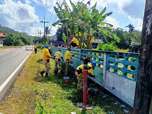 On February 19, 2025, at 09:00 AM, the Special Task Unit of the 46th Border Patrol Battalion organized its volunteer personnel along with community leaders from Village 1, Ban Baluika, local government agencies in Ruso Subdistrict, and the royal volunteer citizens to participate in the volunteer activity project “We Do Good with Heart” at Ban Baluika School, Village 1, Ruso Subdistrict, Ruso District, Narathiwat Province. The activities included cleaning the entire school area, painting the school fence, and enhancing the surrounding landscape to make Ban Baluika School cleaner, greener, and more conducive to learning. Additionally, the initiative helped foster unity within the community, with participation from all sectors of society, inspiring both students and residents to engage in good deeds for society.