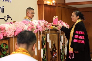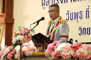 โอกาสนี้ องคมนตรี ได้กล่าวให้โอวาทแก่ผู้สำเร็จการศึกษาว่า ขอแสดงความยินดีและขอชื่นชมผู้สำเร็จการศึกษาหลักสูตรอนุปริญญาทุกคน การที่ทุกคนมีวันนี้ผลมาจากการสร้างโอกาสทางการศึกษาให้กับตนเอง ด้วยความมุ่งมั่น อุตสาหะ ศึกษาเล่าเรียนตามที่ได้มุ่งหมายไว้ นำมาซึ่งความภาคภูมิใจ ของตัวเอง ครอบครัว ตลอดจนผู้ให้การสนับสนุน กระบวนการสร้างการเรียนรู้ร่วมกัน ขอให้ผู้สำเร็จการศึกษาจากวิทยาลัยชุมชมชนปัตตานีทุกคน พึงตระหนักถึงโอกาสที่ได้รับโดยการแนะนำบุคคลในชมชมชน เข้าสู่แหล่งการเรียนรู้ เพื่อสร้างปัญญาและร่วมสร้างประโยชนให้กับตนเองและชุมชนและที่สำคัญคือ การร่วมสร้างพลเมืองดีให้กับบ้านเกิดเมืองนอนของเราด้วยความรัก และความเอื้ออาทรต่อกันเพื่อจะนำพาสังคมสู่ความสันติสุข