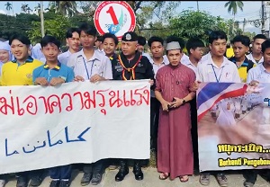 Afterward, over 200 students from Dusongyo School and Suan Phra Ya Wittaya School participated in a march to express their opposition to violence, showing their resolve to unite against all forms of violence. They raised banners with messages such as: “Chana people oppose violence,” “Chana residents reject violence,” “Chana people want peace,” “Stop violence,” and “We want peace in the South.”