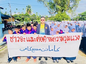 On February 19, 2025, at 9:00 AM, Colonel Phatsawit Pochada, Commander of the 49th Ranger Special Task Force, along with personnel, in cooperation with government agencies in Chana District, local leaders, religious leaders, teachers, students, and citizens from Dusongyo Subdistrict, Chana District, Narathiwat Province, participated in an activity against violence, calling for peace in the area after an incident in which a group of criminals left a motorcycle with an improvised explosive device next to the wall of the Special Task Force Base of Narathiwat 41, opposite the Dusongyo Village Early Childhood Development Center, in Dusongyo Subdistrict, Chana District, on February 15, 2025. This incident affected the operation of the early childhood center in the area.