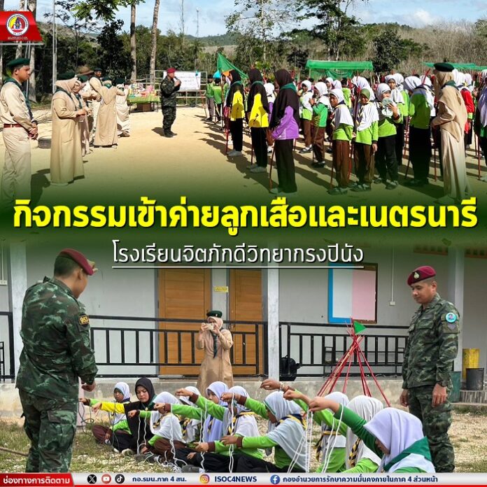 Pasukan Khas Santi Suk, diketuai oleh Unit Kawalan 953 dan Pasukan Santi Suk 305 bersama dengan Pasukan Taksin Sampan 331, telah mengadakan aktiviti Kem Latihan Pengakap dan Pandu Puteri di Sekolah Jitphakdee Witthaya, Grong Pinang, Daerah Grong Pinang, Negeri Yala. Aktiviti ini bertujuan untuk memperkukuh pemahaman dan mengembangkan kemahiran dalam kalangan remaja di kawasan tersebut. Latihan Pengakap dilaksanakan di 3 stesen iaitu: Pertolongan Cemas Asas, Penggunaan Ikatan Tali, dan Pematuhan Peraturan Lalu Lintas. Dalam setiap stesen, pelajar berpeluang untuk belajar daripada pegawai tentera yang berkemahiran dalam setiap bidang. Latihan ini mendapat sambutan yang baik daripada pelajar dengan lebih kurang 100 orang peserta yang turut serta.