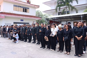 During this time, Police Major General Kritsada Kaewchandi placed wreaths to honor the fallen officers and offered financial assistance to their families on behalf of Ms. Pha Thongtharn Shinawatra, Prime Minister and Director of Internal Security Operations, Police General Kittirat Phanthachit, National Police Chief, Police Lieutenant General Samran Nuanma, Assistant National Police Chief / Commander of the National Police Front Operations Center,