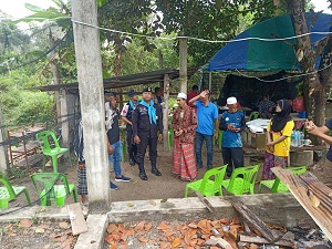 On February 22, 2025, at 9:00 AM, personnel from Company 4613 of the 46th Border Patrol Battalion, together with Mr. Abdul Kalam Tanjung Utong, the Village Head of Batang, and Mr. Abdul Siding Saleh, the Village Chief of Group 6, Bulukahile, visited and provided assistance to Mr. Madari Yusobuka, a fire victim, at house number 91/1, Group 6, Batang Sub-district, Rueso District, Narathiwat Province.