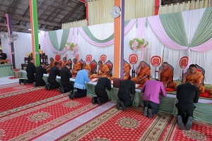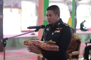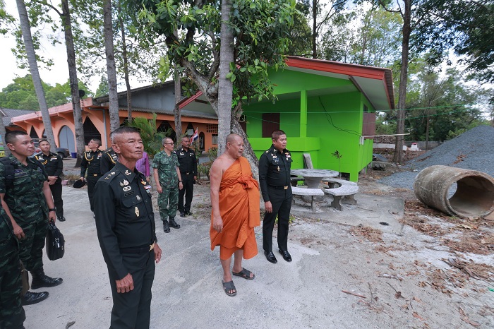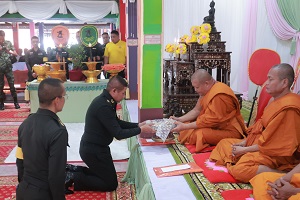 Panglima Tentera Ke-4 mengetuai pasukan anggota tentera dan umat Buddha untuk bersama-sama dalam upacara derma pakaian panjang untuk menyumbang dana bagi pembelian jubin untuk bumbung tempat pembakaran jenazah di Wat Muensong, Daerah Chawad, Nakhon Si Thammarat.