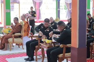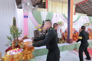 The Commander of the 4th Army Area led a group of personnel and Buddhists in a merit-making ceremony to donate to the fund for purchasing roof tiles for the crematorium at Wat Muensong, Chawad District, Nakhon Si Thammarat.
