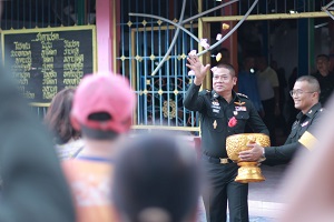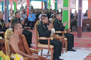 On this occasion, Major General Phaisan Nu Sang, Commander of the 4th Army Area / Director of Internal Security Operations in the 4th Region, donated a robe and Thai religious offerings to Phra Kru Phatthan Thammabhorn, the abbot of Wat Khao Lek, with a total contribution of over 682,200 Baht.
