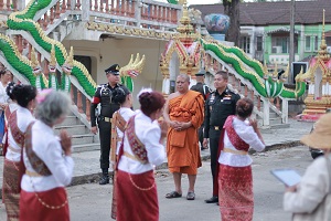 On February 22, 2025, at 11:00 AM, at Wat Muen Rangsang (Wat Muensong), Chawad Subdistrict, Chawad District, Nakhon Si Thammarat, Major General Phaisan Nu Sang, Commander of the 4th Army Area / Director of Internal Security Operations in the 4th Region, presided over the layman’s side of the merit-making ceremony to donate funds for purchasing roof tiles for the crematorium and to support the promotion and development of Buddhism in Nakhon Si Thammarat. Phra Kru Phatthan Thammabhorn, the abbot of Wat Khao Lek, presided over the monks’ side, with government officials and local citizens participating in the ceremony.