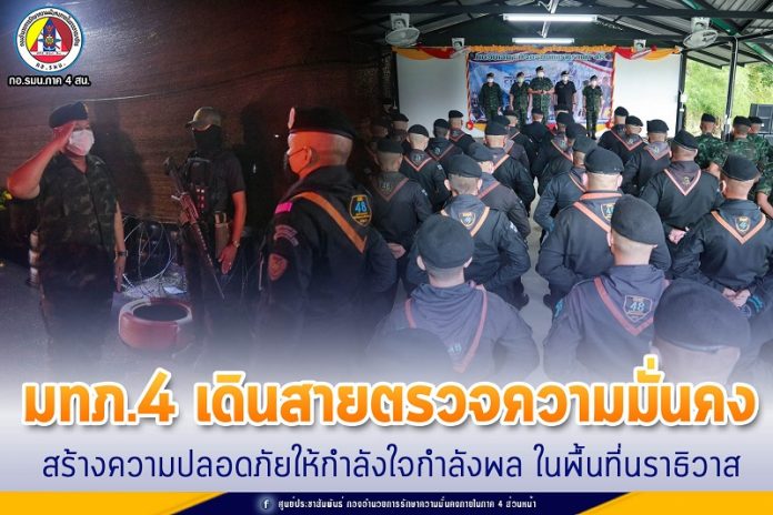 เมื่อวันที่ 4 มกราคม 2564 เวลา 16.00 น. ที่หน่วยเฉพาะกิจกรมทหารพรานที่ 48 ค่ายกรมหลวงนราธิวาสราชนครินทร์ อำเภอเจาะไอร้อง จังหวัดนราธิวาส พลโท เกรียงไกร ศรีรักษ์ แม่ทัพภาคที่ 4 /ผู้อำนวยการรักษาความมั่นคงภายในภาค 4 เดินทางพบปะตรวจเยี่ยมหน่วยทหาร เพื่อติดตามรับฟังผลการปฏิบัติงาน พร้อมมอบนโยบายแผนรักษาความปลอดภัยในพื้นที่ ปฏิบัติการเชิงรุกคุมเข้มพื้นที่เสียง พื้นที่ล่อแหลม เพื่อให้เกิดความมั่นคงปลอดภัยในชีวิตและทรัพย์สินของพี่น้องประชาชน ตลอดจนให้หน่วยในพื้นที่รับผิดชอบ สร้างความรับรู้และความเข้าใจแก่ผู้นำท้องที่ ผู้นำท้องถิ่น และพี่น้องประชาชน สร้างการมีส่วนร่วมเป็นหูเป็นตาให้กับเจ้าหน้าที่รัฐ ทำพื้นที่ให้เกิดความปลอดภัย โดยเพิ่มประสิทธิภาพด้านการข่าว บูรณาการกำลังทั้งพื้นที่เมือง พื้นที่ป่าภูเขา และพื้นที่ตอนใน ลาดตระเวนกดดัน บังคับใช้กฎหมายกับกลุ่มผู้ก่อความไม่สงบ เพื่อลดความพยายามการก่อเหตุให้มีประสิทธิภาพ และติดตามเป้าหมายสำคัญเร่งด่วนมาดำเนินการทางกฎหมายโดยเร็ว