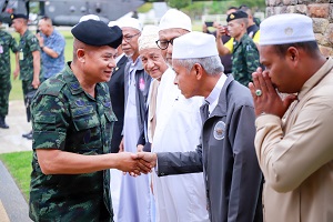 Mejar Jeneral Phisal Nusan, Panglima Tentera Ke-4 / Pengarah Keselamatan Dalam Negeri Tentera Ke-4 berkata, “Pusat Pengurusan Keselamatan Dalam Negeri Tentera Ke-4 terus melaksanakan usaha untuk memudahkan dan menjaga keselamatan dalam sokongan terhadap pelaksanaan ibadah umat Islam. Semua ini dijalankan mengikut Pelan Operasi 4683 – Ramadan Sejahtera, bagi memastikan bulan Ramadan tahun 2568 benar-benar membawa kedamaian kepada negeri-negeri di selatan Thailand. Sebelumnya, ada pihak yang berusaha memanipulasi prinsip agama yang telah mengganggu pelaksanaan ibadah umat Islam, namun yang sebenarnya Ramadan adalah bulan mulia bagi umat Islam untuk berbuat baik dan benar. Kami meminta kerjasama dari orang ramai, pemimpin tempatan, dan masyarakat setempat untuk sama-sama menjaga kawasan dan bekerjasama dengan pihak berkuasa dalam mencegah kejadian yang tidak diingini, serta membantu melaporkan maklumat yang boleh membawa kepada kawasan bebas ancaman dan keselamatan awam. Satu lagi aspek penting adalah memperhatikan cara hidup umat Islam, dengan menyesuaikan perancangan bagi memudahkan umat tanpa mengganggu ibadah dan puasa mereka. Kami juga menyeru kepada semua untuk menyokong aktiviti sosial yang melibatkan berbuka puasa kerana ia akan membantu mempererat hubungan antara kerajaan dan rakyat.”
