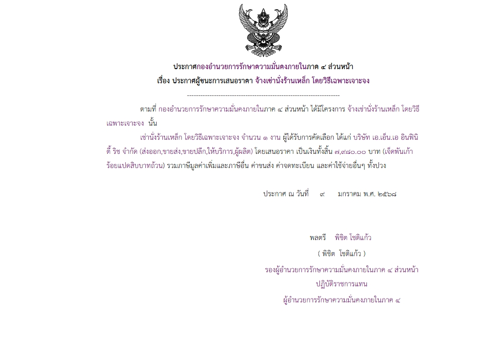 จัดซื้อ จัดจ้างประกาศผู้ชนะการเสนอราคา ประกาศผู้ชนะการเสนอราคา จ้างเช่านั่งร้านเหล็ก โดยวิธีเฉพาะเจาะจง February 27, 2025 212 Share Facebook Twitter Google+ Telegram LINE ประกาศผู้ชนะการเสนอราคา จ้างเช่านั่งร้านเหล็ก โดยวิธีเฉพาะเจาะจง