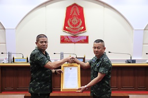 The presentation of a trophy to the unit with outstanding performance in showcasing military capability through music in the “Ratchawallap Raeng Rabam” (Hop to the bodies slams) in 2567.