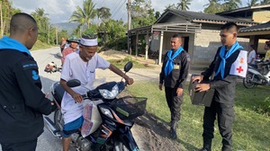 วันที่ 1 มีนาคม 2568 เวลา 09.00 น. ณ บ้านปูโป๊ะ หมู่ที่ 2 ตำบลรือเสาะออก อำเภอรือเสาะ จังหวัดนราธิวาส กองร้อยทหารพรานที่ 4603 หน่วยเฉพาะกิจกรมทหารพรานที่ 46 จัดกำลังพลชุดปฏิบัติการกิจการพลเรือน ลงพื้นที่พบปะเยี่ยมเยียนประชาชน พร้อมมอบถุงยังชีพ และจัด “ชุดหมอเดินเท้า” ให้บริการตรวจสุขภาพเบื้องต้น แจกจ่ายยาสามัญประจำบ้าน และให้คำแนะนำในการดูแลสุขภาพก่อนเข้าสู่เดือนรอมฎอน กิจกรรมนี้จัดขึ้นเพื่อส่งเสริมการปฏิบัติศาสนกิจของพี่น้องชาวไทยมุสลิมในเดือนรอมฎอน รวมถึงช่วยบรรเทาความเดือดร้อน ลดค่าใช้จ่าย และลดภาระในการเดินทางไปพบแพทย์ อีกทั้งยังเป็นการสร้างความสัมพันธ์อันดีระหว่างเจ้าหน้าที่กับประชาชน โดยในแต่ละครั้งที่ลงพื้นที่ ชุดหมอเดินเท้ายังได้มีโอกาสพูดคุย สอบถามสารทุกข์สุขดิบ เพื่อให้ความช่วยเหลือได้อย่างเหมาะสม