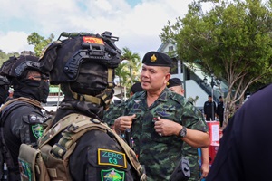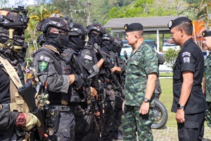 Major General Woradet Decharaksa also stressed to the personnel: “Today, I am bringing the concerns of the leadership, the Commander of the 4th Army Area / Director of Internal Security Operations Area 4, who continuously monitors and cares about your mission. I am confident that all personnel have a strong sense of duty and awareness of their responsibilities at all times. The purpose of this visit is to provide guidance and share knowledge to help everyone accomplish their assigned tasks. The key is ensuring safety for both the officers and the public during the execution of these missions. I am confident that all personnel of the Southern Border Patrol Task Force / Joint Special Operations Unit will perform their duties to the best of their ability to maintain peace and security in the area.”