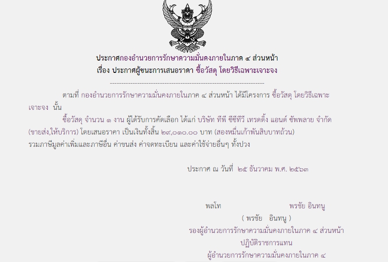 ประกาศผู้ชนะการเสนอราคา ซื้อวัสดุ โดยวิธีเฉพาะเจาะจง (29,010.00)