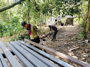 🌊 On March 1, 2025, from 06:00 to 18:00, the Special Task Force of the 49th Ranger Battalion deployed a team of engineers from Company 4904 to the field to construct homes for families affected by a landslide disaster at House No. 90, Village 3, Mamong Subdistrict, Sukirin District, Narathiwat Province. This initiative aims to restore the livelihoods of people impacted by natural disasters, particularly the home of Mrs. Dopusa Saha, which was damaged by a landslide on December 25, 2024.