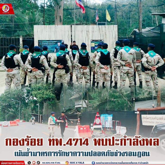วันที่ 2 มีนาคม 2568 ณ ฐานปฏิบัติการชุดคุ้มครองตำบลสะเอะ บ้านบาตูบือละ หมู่ที่ 2 ตำบลสะเอะ อำเภอกรงปินัง จังหวัดยะลา ร้อยโท ไชยวัฒน์ รัตนพร ผู้บังคับกองร้อยทหารพรานที่ 4714 ลงพื้นที่พบปะกำลังพล สมาชิกกองอาสารักษาดินแดนชุดคุ้มครองตำบลสะเอะ เพื่อเน้นย้ำมาตรการรักษาความปลอดภัยภายในฐานปฏิบัติการ การใช้ยุทธวิธีป้องกันตนเองระหว่างลาพักและการปฏิบัติหน้าที่ในช่วงเดือนรอมฎอน