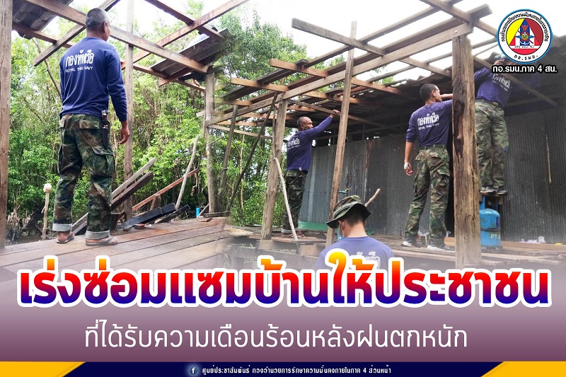 เมื่อวันที่ 5 มกราคม 2564 กองร้อยปืนเล็กที่ 4 หน่วยเฉพาะกิจนาวิกโยธินกองทัพเรือที่ 33 นำกำลังพลซ่อมแซมบ้านอย่างเร่งด่วนให้กับ นางสาวสะเนาะ ยะโกะ เนื่องจากในพื้นที่มีฝนตกหนักติดต่อกันหลายวัน ทำให้บ้านทรุดตัวจนได้รับความเดือดร้อน ณ บ้านเลขที่ 214/5 บ้านปูลากาป๊ะ หมู่ที่ 7 ตำบลกะลุวอเหนือ อำเภอเมือง จังหวัดนราธิวาส