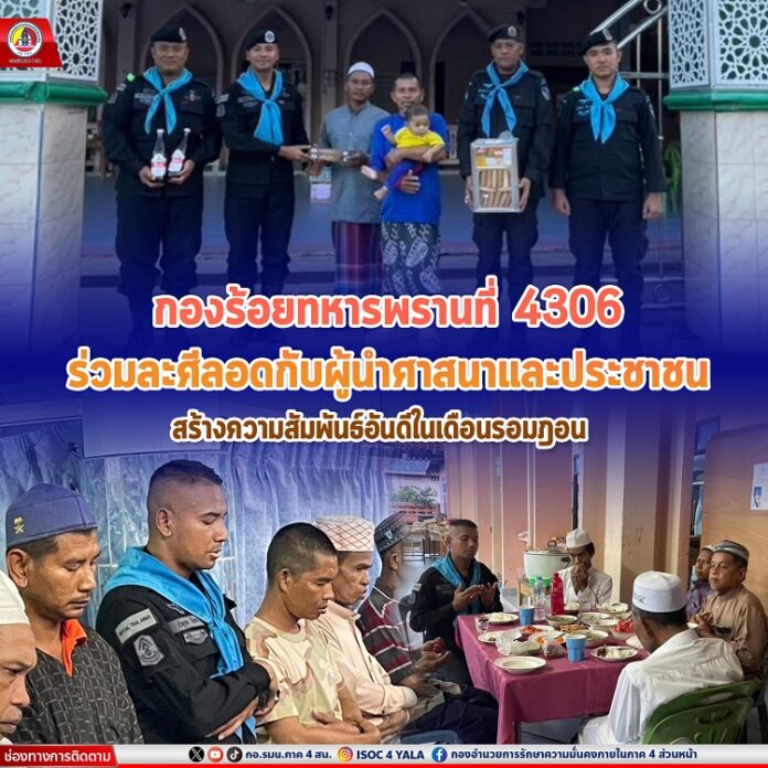 ในโอกาสนี้ กำลังพลได้ร่วมมอบ อินทผาลัม น้ำหวาน และขนม ให้กับประชาชน เพื่อเป็นส่วนหนึ่งในการส่งเสริมความสัมพันธ์ที่ดีระหว่างเจ้าหน้าที่และชุมชน พร้อมสร้างขวัญและกำลังใจให้กับกำลังพลที่ปฏิบัติหน้าที่ในพื้นที่