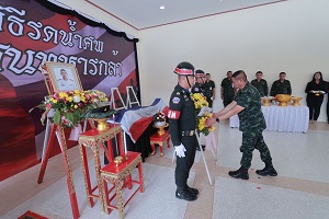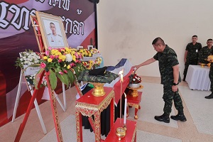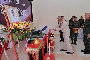 โอกาสนี้ พลโท ไพศาล หนูสังข์ แม่ทัพภาคที่ 4 / ผู้อำนวยการรักษาความมั่นคงภายในภาค 4 เป็นผู้แทนวางพวงหรีดเคารพศพของ นางสาวแพทองธาร ชินวัตร นายกรัฐมนตรี / ผู้อำนวยการรักษาความมั่นคงภายในราชอาณาจักร, นายภูมิธรรม เวชยชัย รัฐมนตรีว่าการกระทรวงกลาโหม, พลเอกพนา แคล้วปลอดทุกข์ ผู้บัญชาการทหารบก / รองผู้อำนวยการรักษาความมั่นคงภายในราชอาณาจักร พร้อมได้มอบเข็มบางระจันเพื่อประกาศเกียรติคุณยกย่องเชิดชูเกียรติแก่วีรชนทหารกล้าในการเสียสละเพื่อความสงบสุขของพื้นที่จังหวัดชายแดนภาคใต้ สละชีวิตเพื่อปกป้องแผ่นดินไทย ตลอดจนมอบเงินช่วยเหลือเยียวยาให้แก่ครอบครัวของผู้เสียชีวิต