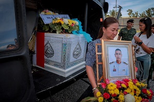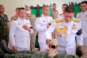 ในวันนี้ (12 มีนาคม 2568) เวลา 13.00 น. ที่ ศาลาบำเพ็ญกุศลวัดสุวรรณากร ตำบลบ่อทอง อำเภอหนองจิก จังหวัดปัตตานี พลโท ไพศาล หนูสังข์ แม่ทัพภาคที่ 4 / ผู้อำนวยการรักษาความมั่นคงภายในภาค 4 เป็นประธานในพิธีรดน้ำศพ ร้อยโทภูวิวัฒน์ คำสง ตำแหน่ง ผู้บังคับหมวดปืนเล็กที่ 1 กองร้อยทหารราบที่ 2 หน่วยเฉพาะกิจกองพันทหารราบที่ 1 ซึ่งเสียชีวิตจากเหตุการณ์ดังกล่าว โดยมี ผู้ช่วยเลขาธิการศูนย์อำนวยการบริหารจังหวัดชายแดนภาคใต้, คณะผู้บังคับบัญชา, หัวหน้าส่วนราชการ, เพื่อนข้าราชการ, ทหาร, ตำรวจและฝ่ายปกครอง เข้าร่วมในพิธีฯ ท่ามกลางความอาลัยอย่างสุดซึ้ง