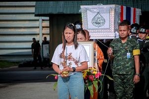 และในเวลา 16.00 น. ที่ สนามบินบ่อทอง ตำบลบ่อทอง อำเภอหนองจิก จังหวัดปัตตานี ได้ทำพิธีส่งร่างวีรชนทหารกล้าด้วยเฮลิคอปเตอร์ทางทหาร เพื่อบำเพ็ญกุศลตามหลักศาสนา ณ วัดอภัยเขตตาราม ถนนอู่มาต ตำบลนาสาร อำเภอบ้านนาสาร จังหวัดสุราษฎร์ธานี ต่อไป