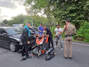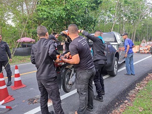 On March 13, 2025, at 4:40 PM, personnel from Ranger Battalion 4603, Special Task Force of the 46th Ranger Regiment, deployed operational units and checkpoints at the base to assist civilians involved in an accident between a motorcycle and a car at a checkpoint in front of the operation base, Ranger Battalion 4603, Village 2, Ban Poarama, Rueso District, Narathiwat Province. The incident resulted in injuries, and Ranger personnel immediately provided assistance by performing first aid and contacted the police to manage the situation. Additionally, the military personnel facilitated traffic management to ensure vehicles passing through the area could continue on their way as normal.