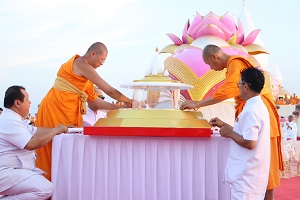 In addition, Phra Kru Palad Rattanawirovatan, the Abbot of Wat Phra Dhammakaya, spoke about the importance of the chedi, stating that the Buddha Relics are part of the Buddha’s physical body and serve as a symbol of the Buddha’s wisdom, purity, and compassion. The relics confirm the true existence of the Buddha and symbolize the presence of Buddhism. They also serve as an anchor for the minds of Buddhists worldwide, reminding us not to be heedless in life. We are reminded that even the Buddha, who is filled with great virtues, had to pass away and enter nirvana. Now, we remind everyone to strive for their own benefit and the benefit of others, with mindfulness and diligence.