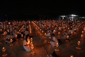 During the ceremony, the Chief Monk of Pattani Province and the Deputy Governor of Pattani Province offered a tray of ceremonial offerings to Somdet Phra Mahawachiramangkhalajarn, the Chief Monk of Southern Thailand / Advisor to the Sangha Supreme Council / Abbot of Wat Kaphang Surin, Trang. The Deputy Governor of Pattani then welcomed the monks, religious followers, and opened the ceremony for the installation of the Buddha Relics in Phra Phatummachedi (The Buddha of Five Kings). Following this, Phra Sophon Wachiranayok, the Chief Monk of Pattani, led a prayer while Somdet Phra Mahawachiramangkhalajarn, the Chief Monk, invited the Buddha Relics from the celestial vehicle, with monks and participants respectfully bowing. Afterward, the chief monk led a prayer for the offering of the lamps, and the participants lit lamps in reverence to the Buddha.