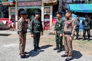 On March 17, 2025, at 10:00 AM, Lieutenant Colonel Phanupong Chana-wanno, Deputy Commander of the Special Task Unit of the 1st Infantry Battalion, together with the unit personnel, government agencies, and various sectors, including Thai-Chinese Buddhist citizens, participated in the important local tradition, “Commemoration of the Founding of the Phut Jow Hoot Chou Temple in Tham Thalu,” also known as “Birthday Celebration,” at the Phut Jow Hoot Chou Temple, Tham Thalu Subdistrict, Bannang Sata District, Yala Province. This tradition holds deep meaning for the local community, serving as not only a religious center but also a place where people from different sectors gather to build strong relationships.