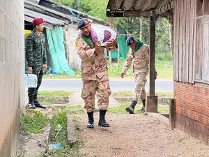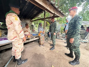 During this year’s Ramadhan month, the Santi Suk Special Task Force organized an activity to strengthen the relationship between government officials and the people in the southern border provinces. The “Ramadhan Satu Hati” project focuses on providing assistance and alleviating the suffering of the community during this significant time. The Santi Suk Unit 302, together with the Taksin Samphan Unit 331, the military personnel from Company 4115, the 41st Border Patrol Police, members of the Southern Border Provinces Defense Volunteers (SDVs) from Tathong Subdistrict, and community leaders in the area, collaborated to carry out the “Ramadhan Satu Hati” project, which included the “Doctors Walking into the Community” activity. The medical team provided healthcare services at Tok Phran Village, Moo 1, Tathong Subdistrict, Raman District, Yala Province. In addition to offering medical care, they also distributed survival kits to the elderly and vulnerable groups in the community who are in need.