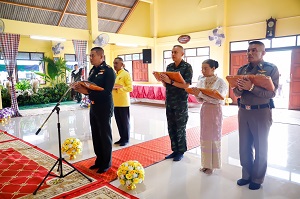 Panglima Tentera Ke-4 sebagai pengerusi majlis derma pakaian bagi tujuan kebajikan di Wat Sri Phattanaram, Kampung Tase, Daerah Muang Yala untuk membeli ambulans kecemasan dan melestarikan ajaran Buddha bersama saudara-saudara penganut agama Buddha.
