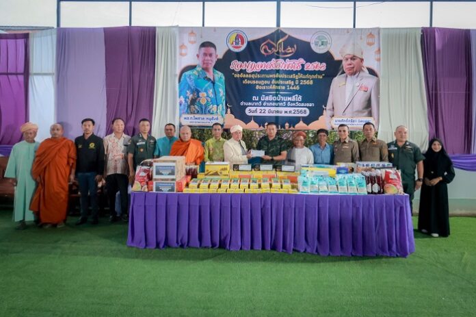 Hari ini (22 Mac 2568) jam 5:30 petang, bertempat di Masjid Kampung Plee, Daerah Nakhon Si, Negeri Songkhla, Mejar Jeneral Phitsan Nusaeng, Panglima Tentera 4 / Pengarah Keselamatan Dalam Negeri Wilayah 4, merasmikan aktiviti berbuka puasa (iftar) sempena bulan Ramadan Hijrah 1446 tahun 2568, bagi mengukuhkan hubungan dan persefahaman antara rakyat dan agensi kerajaan, berlandaskan kepelbagaian dalam masyarakat majmuk, serta memperkukuhkan keselamatan dan kedamaian sosial. Aktiviti ini juga menggalakkan umat Islam untuk mengamalkan ajaran agama Islam dalam bulan Ramadan, termasuk sesi perbincangan dengan pemimpin agama dan masyarakat setempat. Turut hadir ialah Ustaz Wajirusunthara, Timbalan Ketua Agama Negeri Songkhla, Pengerusi Jawatankuasa Islam Negeri Songkhla, Penolong Setiausaha Pusat Pengurusan Wilayah Selatan, Komander Pasukan Khas Songkhla, Timbalan Komander Polis Negeri Songkhla, Pegawai Daerah, pemimpin agama, dan orang awam.