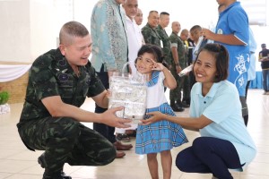 ด้าน นางสาวปณิสรา มณีรัตน์ ตัวแทนเยาวชนในหมู่บ้านรอตันบาตูได้กล่าวขอบคุณรองแม่ทัพภาคที่ 4 และผู้ใหญ่ใจดีทุกท่านว่า ในวันนี้เยาวชนซึ่งเป็นเด็กกำพร้า ประชาชนในหมู่บ้าน และผู้ป่วยติดเตียง จะได้รับชุดรายอ ชุดสงกรานต์ รวมทั้งสิ้น จำนวน 253 คน พวกเราทุกคนดีใจ และมีขวัญกำลังใจ ที่ผู้ใหญ่ทุกท่านไม่เคยทอดทิ้ง และมาสร้างความสุข สร้างรอยยิ้มให้กันในทุกๆ ปี ร่วมกันส่งเสริมวัฒนธรรม ประเพณีอันดีงามของประชาชนในพื้นที่ พร้อมทั้งสร้างความสัมพันธ์อันดีของเจ้าหน้าที่และประชาชน ลูกๆ ทุกคนที่อยู่ ณ ที่นี้ ขอสัญญาว่าจะเติบโตเป็นพลเมืองที่ดี ตั้งใจศึกษาเล่าเรียนเพื่อกลับมาช่วยกันพัฒนาบ้านเกิด และสิ่งสำคัญที่จะบันทึกไว้ในหัวใจ คือ “การแสดงความจงรักภักดี ต่อสถาบัน ชาติ ศาสนา และพระมหากษัตริย์”