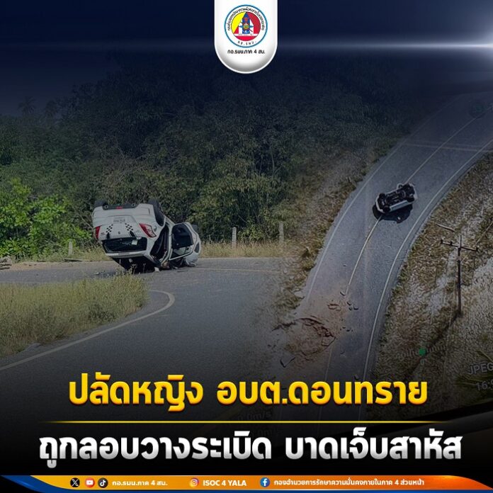 As a result, Mrs. Temduang suffered serious injuries, including a broken spine from the car’s overturning. She was assisted and sent to Maikhan Hospital before being transferred to Songkhla Nakarin Hospital for further treatment.