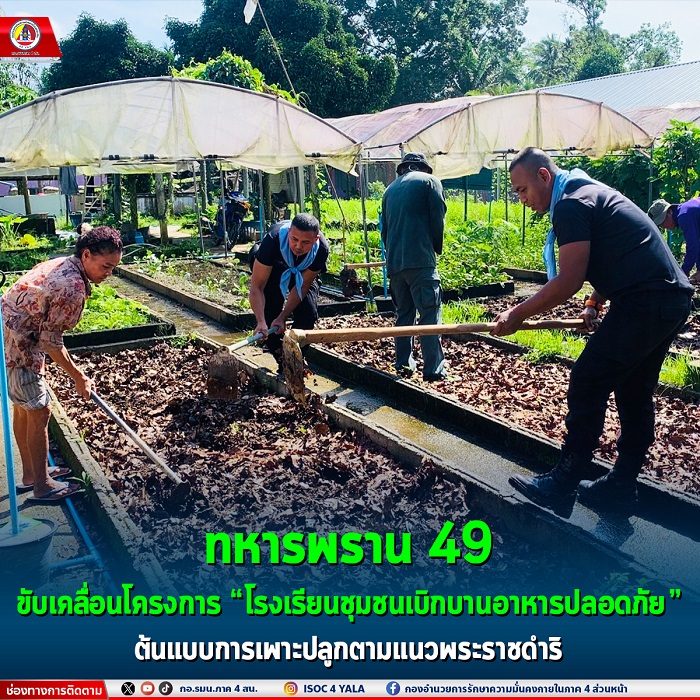 วันที่ 24 มีนาคม 2568 เวลา 09.30 น. ณ โรงเรียนตำรวจตระเวนชายแดนบ้านไอร์บือแต หมู่ที่ 4 ตำบลช้างเผือก อำเภอจะแนะ จังหวัดนราธิวาส กองร้อยทหารพรานที่ 4910 หน่วยเฉพาะกิจกรมทหารพรานที่ 49 นำโดย จ่าสิบเอก ธีระศักดิ์ อินไหม รองหัวหน้าชุดปฏิบัติการกิจการพลเรือน พร้อมด้วย กำลังพลชุดปฏิบัติการกิจการพลเรือน ลงพื้นที่ ร่วมกับบุคลากรทางการศึกษาโรงเรียนตำรวจตระเวนชายแดนบ้านไอร์บือแต ตำบลช้างเผือก จัดกิจกรรมให้กับโรงเรียนในโครงการ ”โรงเรียนชุมชนเบิกบานอาหารปลอดภัย“ ซึ่งเป็นเมล็ดพันธุ์ที่ได้รับการสนับสนุนเมล็ดพันธุ์ผัก จากศูนย์พัฒนาพันธุ์พืชฯ ซึ่งประกอบด้วย เมล็ดพันธุ์ จำนวน 10 ชนิด เพื่อนำไปขยายผลให้กับโรงเรียนที่เข้าร่วมโครงการในพื้นที่ โดย ชุดปฏิบัติการกิจการพลเรือนได้เข้าดำเนินการในขั้นที่ 2 ในขั้นตอนการจัดเตรียมแปลงปลูกเพื่อเตรียมพร้อมสำหรับการเพาะปลูก และขั้นตอนเพาะเมล็ดพันธุ์ผัก ซึ่งเป็นกิจกรรมที่น้อมนำแนวพระราชดำริของ สมเด็จพระกนิษฐาธิราชเจ้า กรมสมเด็จพระเทพรัตนราชสุดา สยามบรมราชกุมารี มาปฏิบัติ โดยเริ่มจากหน่วยทหารเพื่อให้เป็นต้นแบบของความสำเร็จ เเละให้หน่วยทหารนำไปต่อยอดในสถานศึกษา ให้เด็กๆได้เรียนรู้ และสถานศึกษาจะเป็นศูนย์เพาะเมล็ดพันธุ์ และขยายผลไปยังชุมชนต่อไป