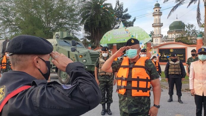 โดยแม่ทัพภาคที่ 4 กล่าวว่า “จากสถานการณ์น้ำท่วมฝนตกหนัก มีปริมาณน้ำเพิ่มมากขึ้น สมทบจากน้ำที่ปล่อยมาจากเขื่อนบางลาง ด้วยความเป็นห่วงพี่น้องประชาชนที่ได้รับผลกระทบ จึงได้สั่งการไปยังหน่วยที่เกี่ยวข้องเข้าดูแลช่วยเหลือพี่น้องประชาชนในการอพยพ ข้าวของเครื่องใช้ และพี่น้องประชาชนออกจากบ้านเรือนที่มีพื้นที่ต่ำเสี่ยงต่ออันตรายออกมายังศูนย์อพยพเพื่อความปลอดภัยตั้งแต่เมื่อคืนนี้ และเฝ้าระวังตลอด 24 ชั่วโมง โดยได้จัดรถครัวสนามจากศูนย์บรรเทาสาธารณะภัยจากกองพันทหารราบที่ 2 กรมทหารราบที่ 152 พร้อมเจ้าหน้าที่ปรุงอาหารแจกจ่ายให้เพียงพอต่อจำนวนการอพยพของพี่น้องประชาชน หลังจากนี้จะเข้าพื้นที่เยี่ยมให้กำลังใจผู้ได้รับผลกระทบที่ยังคงอาศัยในพื้นที่ โดยจะน้ำถุงยังชีพ เครื่องอุปโภค บริโภค น้ำดื่ม เวชภัณฑ์ทางการแพทย์ และหมอทหารให้การช่วยเหลือดูแลเบื้องต้น หลังจากที่น้ำลดระดับลงแล้วจะเข้าสู่เรื่องของการเข้ามาบูรณะฟื้นฟู ช่วยเหลือกันต่อไป”