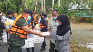 วันนี้ (7 มกราคม 2564) เวลา 16.30 น. ที่ว่าการอำเภอยะหา จังหวัดยะลา พลโท เกรียงไกร ศรีรักษ์ แม่ทัพภาคที่ 4 /ผู้อำนวยการรักษาความมั่นคงภายในภาค 4 เดินทางเยี่ยมให้กำลังใจผู้ประสบอุทกภัยในเขตพื้นที่อำเภอยะหา พร้อมตรวจการให้ความช่วยเหลือด้านบรรเทาสาธารณะภัย ทั้งกำลังพล และยุทโธปกรณ์ อำนวยความสะดวกช่วยเหลือพี่น้องประชาชนตลอด 24 ชั่วโมง จนกว่าจะพ้นวิกฤติ โดยมีรถครัวสนามจากศูนย์บรรเทาสาธารณภัย กองพันทหารราบที่ 2 กรมทหารราบที่ 152 ปรุงอาหารสุกใหม่แจกจ่ายไปยังบ้านเรือนให้ถึงมือพี่น้องประชาชน ก่อนเดินทางไปยังพื้นที่ หมู่ที่ 1 บ้านละแอ ตำบลละแอ อำเภอยะหา จังหวัดยะลา ที่มีชาวบ้านได้รับความเดือดร้อนจากอุทกภัยกว่า 105 หลังคาเรือน ไม่สามารถสัญจรไป-มา ระหว่างหมู่บ้านได้ โดยแม่ทัพภาคที่ 4 ได้นำข้าวกล่องปรุงสุกจากครัวสนาม ถุงยังชีพ เครื่องอุปโภคบริโภค สิ่งของจำเป็น แจกจ่ายให้กับพี่น้องประชาชนที่ประสบอุทกภัย บรรเทาความเดือดร้อนในเบื้องต้น ซึ่งระดับน้ำ ในหมู่ที่ 1 บ้านละแอ มีระดับน้ำลดลงจากเมื่อคืนนี้ แต่ยังคงมีปริมาณสูงถึง 1.5 เมตร ในบางจุด