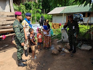 The vulnerable family expressed their gratitude to the military personnel and the Khuha Subdistrict Protection Unit for their assistance. They felt happy and deeply touched by the kindness of the officials who provided support today. This assistance not only alleviates their economic hardship but also serves as a source of encouragement for the local people, making them feel less isolated.