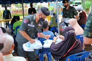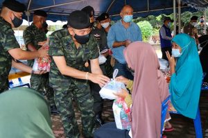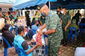เมื่อวันที่ 7 มกราคม 2564 เวลา 17.00 น. พลตรี ศานติ ศกุนตนาค ผู้บังคับหน่วยเฉพาะกิจสงขลา พร้อมด้วย ส่วนราชการ ทหาร ตำรวจ ฝ่ายปกครอง ลงพื้นที่ช่วยเหลือ มอบถุงยังชีพ อาหารกล่องบรรเทาความเดือดร้อนให้แก่ผู้ประสบอุทกภัยที่ในพื้นที่อำเภอสะบ้าย้อย จังหวัดสงขลา ที่ได้รับผลกระทบจากน้ำป่าไหลหลากเข้าท่วมหมู่บ้านแลแบงออกและแลแบงตก หมู่ที่ 1 ตำบลสะบ้าย้อย อำเภอสะบ้าย้อย จังหวัดสงขลา โดยระดับน้ำสูงกว่า 2 เมตร เส้นทางหมู่บ้านถูกตัดขาด ต้องใช้เรือในการเข้าออกเพียงอย่างเดียว ขณะที่บ้านเรือนที่อยู่ในที่ลุ่มต่ำถูกน้ำท่วมสูงเกือบถึงหลังคา โดยขณะนี้ประชาชนกว่า 200 ครัวเรือนได้อพยพออกมาอาศัยยังศูนย์พักพิงชั่วคราว สนามกีฬาเทศบาลท่าพระยา และสวนสาธารณะเทศบาลตำบลสะบ้าย้อย