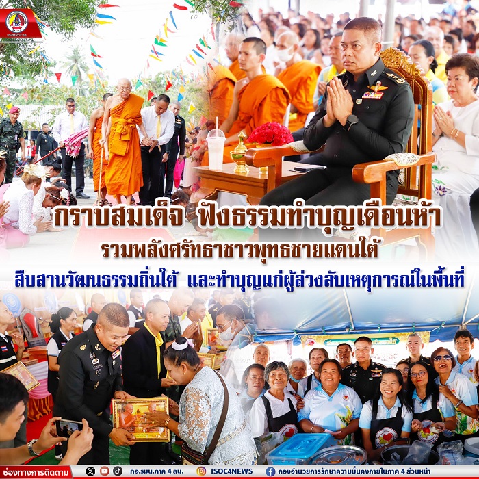The “Paying Homage, Listening to Dhamma, and Making Merit During the Fifth Month to Unite the Faith of Southern Buddhist Communities” event was held to dedicate merit to those who died in violent events in the three southern provinces and four districts of Songkhla Province. It aims to uplift the spirits of the affected families and Buddhist commu