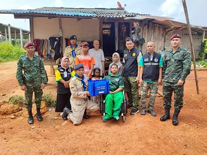 Furthermore, Task Force 505, in collaboration with Task Force 551, members of the village defense volunteer unit from Khuha Subdistrict, personnel from Long Khuan School, local spokespeople, and volunteers from Yala Nan Baru in the Sabayoi District area, visited and provided assistance to vulnerable groups in Khuha Subdistrict, Sabayoi District, Songkhla Province. They delivered essential goods to families in need, such as single mothers and those who have suffered motorcycle accidents and are recovering at home. This support serves as encouragement and alleviates their hardships by reducing costs and helping these families live better lives.