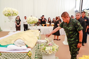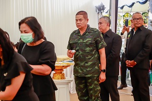 วันนี้ 5 เมษายน 2568 เวลา 15.00 น.ที่ วัดชลธารประสิทธิ์ (วัดใหม่) บ้านหัวควาย ตำบลคูเต่า อำเภอหาดใหญ่ จังหวัดสงขลา พลโท ไพศาล หนูสังข์ แม่ทัพภาคที่ 4 / ผู้อำนวยการรักษาความมั่นคงภายในภาค 4 เดินทางร่วมพิธีรดน้ำศพ นายอำพล พงศ์สุวรรณ ผู้ว่าราชการจังหวัดยะลา ซึ่งได้ถึงแก่อนิจกรรมจากไปอย่างสงบ เมื่อวันที่ 3 เมษายน 2568 ที่ผ่านมา โดยมี นายสมพร ใช้บางยาง นายกสมาคมวอลเลย์บอลแห่งประเทศไทย / อดีตผู้ว่าราชการจังหวัดสงขลา เป็นประธานในพิธี พร้อมด้วย พลตรี ชาคริต อุจะรัตน รองแม่ทัพภาคที่ 4 / รองผู้อำนวยการรักษาความมั่นคงภายในภาค 4 ส่วนหน้า, พลตรี ปกรณ์ จันทรโชตะ ผู้บัญชามณฑลทหารบกที่ 42 ตลอดจนคณะผู้บังคับบัญชา ส่วนราชการ ทหาร ตำรวจ ภาคพลเรือน ผู้นำท้องที่ ผู้นำท้องถิ่น และพี่น้องประชาชน ร่วมในพิธีท่ามกลางความอาลัย