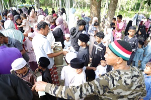 เด็ก ๆ ชายหญิง กว่า 300 คน ที่ จังหวัดยะลา และพื้นที่ใกล้เคียง เข้าคิวรอรับแจกเงิน ที่ผู้ใหญ่ใจดี บริจาคเข้ากองทุน เพื่อสร้างความสุข สร้างรอยยิ้ม ให้กับเด็ก ๆ ในวันรายอแน
