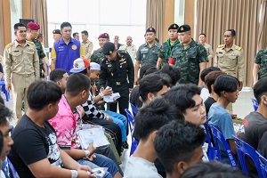 วันที่ 7 เมษายน 2568 เวลา 09.20 น. ณ ที่ว่าการอำเภอจะนะ และที่ว่าการอำเภอสะเดา จังหวัดสงขลา พลตรี ชาคริต อุจะรัตน รองแม่ทัพภาคที่ 4 / รองผู้อำนวยการรักษาความมั่นคงภายในภาค 4 ส่วนหน้า ลงพื้นที่ตรวจเยี่ยมความเรียบร้อยการตรวจเลือกทหารกองเกิน เข้ารับราชการทหารกองประจำการ ปี 2568 ตามที่กองทัพบก กำหนดห้วงการตรวจเลือกฯ ระหว่างวันที่ 1-12 เมษายน 2568 โดยให้ชายไทยผู้ที่เกิดในปี พ.ศ. 2547 (อายุครบ 21 ปีบริบูรณ์) และผู้ที่เกิดในปี พ.ศ. 2539 – 2546 (อายุ 22-29 ปี) ที่ยังไม่เคยเข้ารับการตรวจเลือกหรือผลการตรวจเลือกยังไม่แล้วเสร็จ ไปแสดงตัวต่อเจ้าหน้าที่ ณ หน่วยตรวจเลือกทหารทั่วประเทศ ตามวันและเวลาที่กำหนดในหมายเรียกฯ