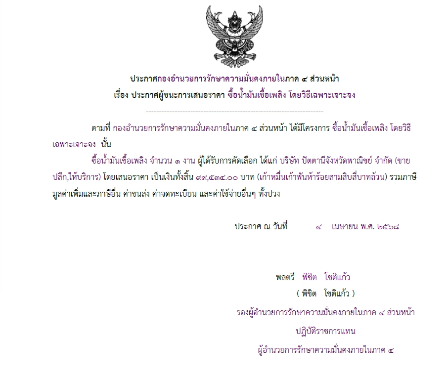 จัดซื้อ จัดจ้างประกาศผู้ชนะการเสนอราคา ประกาศผู้ชนะการเสนอราคา ซื้อน้ำมันเชื้อเพลิง โดยวิธีเฉพาะเจาะจง April 8, 2025 237 Share Facebook Twitter Google+ Telegram LINE
