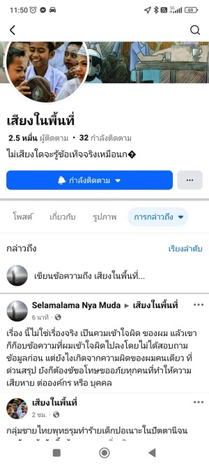 ต่อมามีผู้ใช้เพจเฟสบุ๊คชื่อ “Selamalama Nya Muda” ได้ออกมาโพสต์ผ่านเพจ“เสียงในพื้นที่” ว่า “เรื่องนี้ไม่ใช่เรื่องจริง เป็นความเข้าใจผิดของผม แล้วเขาก๊อปข้อความที่ผมเข้าใจผิดไปลงโดยไม่ได้สอบถามข้อมูลก่อน แต่ยังไงเกิดจากความผิดของผมคนเดียว ที่ด่วนสรุป ยังไงก็ต้องขอโทษขออภัยทุกคน ที่ทำให้ความเสียหาย ต่อองค์กร หรือ บุคคล”