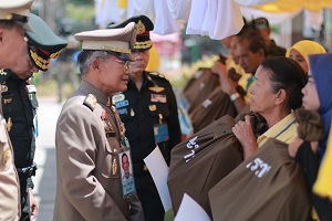จากเหตุการณ์ความรุนแรงในพื้นที่จังหวัดชายแดนภาคใต้ในห้วงที่ผ่านมา ส่งผลกระทบให้เจ้าหน้าที่และประชาชนในพื้นที่ ได้รับบาดเจ็บหลายราย วันที่ 10 เมษายน 2568 เวลา 08.43 น. พระบาทสมเด็จพระเจ้าอยู่หัว ทรงพระกรุณาโปรดเกล้าโปรดกระหม่อมให้ พลเอก ไพบูลย์ คุ้มฉายา องคมนตรี เดินทางไปปฏิบัติภารกิจเยี่ยมและให้กำลังใจ เจ้าหน้าที่ และประชาชนที่ได้รับผลกระทบจากสถานการณ์ความรุนแรงในพื้นที่จังหวัดปัตตานี ประกอบด้วย ที่สถานีตำรวจภูธรหนองจิก อำเภอหนองจิก จังหวัดปัตตานี อัญเชิญสิ่งของพระราชทาน จำนวน 80 ชุด และที่กองร้อยทหารพรานที่ 4411 หน่วยเฉพาะกิจกรมทหารพรานที่ 44 ได้อัญเชิญสิ่งของพระราชทาน จำนวน 60 ชุด เพื่อเป็นขวัญกำลังใจให้แก่เจ้าหน้าที่ที่ได้รับผลกระทบจากเหตุการณ์ความรุนแรงในพื้นที่ โดยมี พลโท ไพศาล หนูสังข์ แม่ทัพภาคที่ 4 / ผู้อำนวยการรักษาความมั่นคงภายในภาค 4, นางพาตีเมาะ สะดียามู ผู้ว่าราชการจังหวัดปัตตานี พร้อมด้วย ข้าราชการ ทหาร ตำรวจ ฝ่ายปกครอง ร่วมให้การต้อนรับ