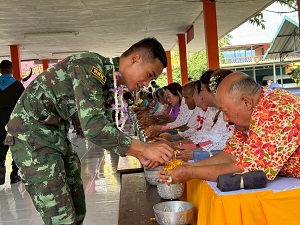 เมื่อวันที่ 11 เมษายน 2568 หน่วยเฉพาะกิจสันติสุข โดย ชุดสันติสุขที่ 404 ร่วมกับ ชุดทักษิณสัมพันธ์ที่ 442 ได้เข้าร่วมกิจกรรมวันกตัญญูผู้สูงอายุ ประจำปีงบประมาณ 2568 ณ วัดโคกตา ตำบลปะรุลู อำเภอสุไหงปาดี จังหวัดนราธิวาส เพื่อสืบสานประเพณีไทยอันทรงคุณค่า พร้อมทั้งส่งเสริมให้เยาวชนและประชาชนในพื้นที่เกิดความตระหนักในความสำคัญของผู้สูงอายุ ผู้ซึ่งเป็นแบบอย่างของความอดทน ความเสียสละ และเป็นกำลังใจให้ลูกหลานได้ดำเนินชีวิตอย่างมีคุณธรรม โดยมี นายศุภวัฒน์ ชูรัตน์ ปลัดอำเภอสุไหงปาดี ให้เกียรติเป็นประธานในพิธี